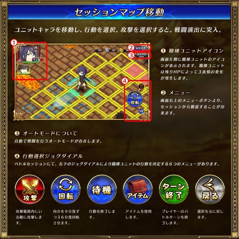 此外,游戏中的每个单位都有不同的移动范围,玩家们在战斗时也可以先进行移动再来决定自己的攻击目标与攻击范围,同时本作也有自动模式,如果玩家们开启自动模式,整场战斗就会自动进入自动攻击的自动战斗,对单纯想要 Farm 的玩家们来说可说是非常方便的设定。